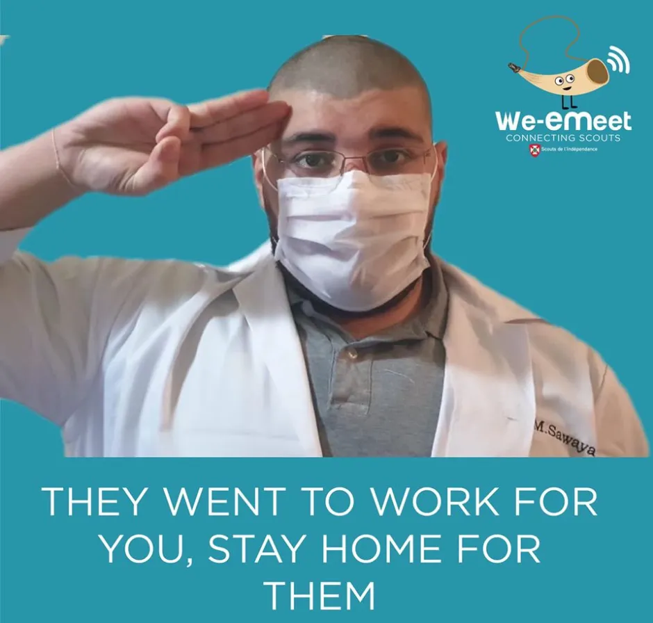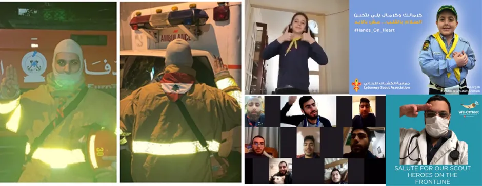 These messages are also being shared by other frontline Scouts working in healthcare, emergency and essential services, for example Fouad Maurice Azar, a fourth generation Lebanese Scout from the Scouts du Liban and firefighter, shown in the photos.